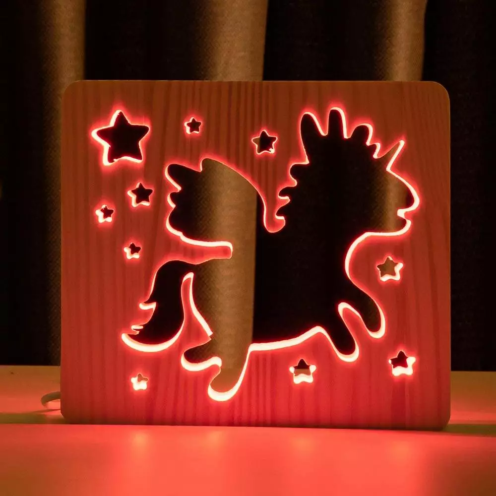 Світильник нічник ArtEco Light з дерева LED "Чарівний єдиноріг" з пультом та регулюванням кольору, RGB