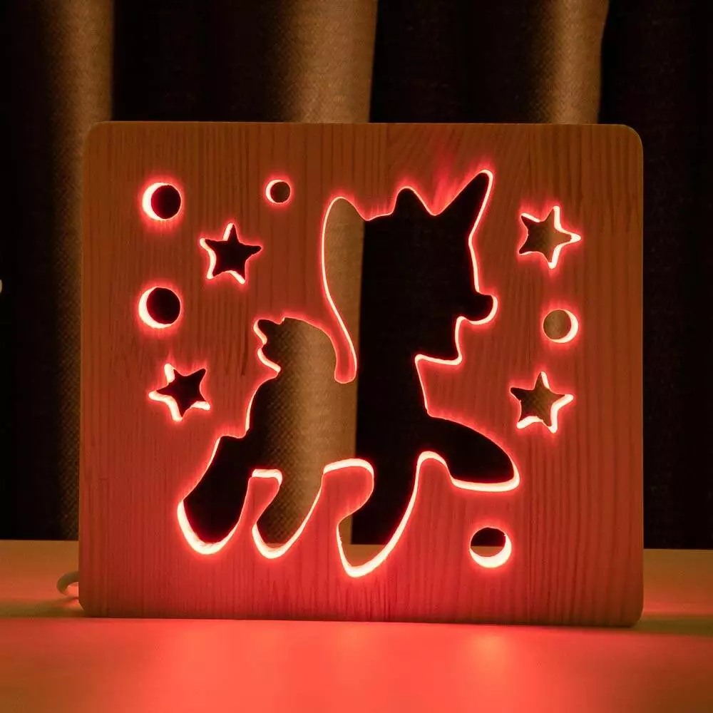 Настільний нічник з дерева, що світиться різними кольорами може використовуватися для дитячих кімнат як додаткове освітлення, а також як оригінальний елемент декору в будинку. В якості подарунка підходить для дітей дошкільного та шкільного віку. В асортименті широка лінійка нічників для вибору потрібного малюнка. За тематикою можна підібрати відповідно для хлопчиків або для дівчаток.