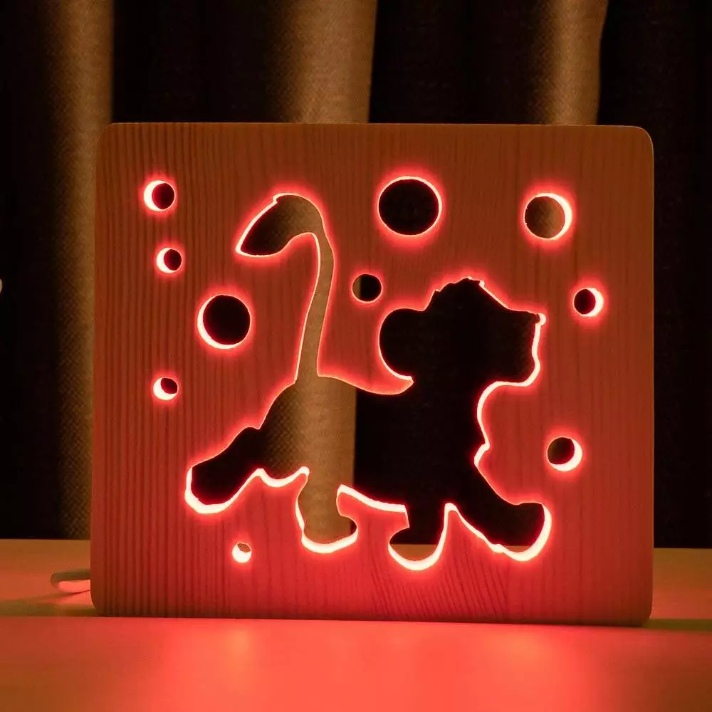Настільний нічник з дерева, що світиться різними кольорами може використовуватися для дитячих кімнат як додаткове освітлення, а також як оригінальний елемент декору в будинку. В якості подарунка підходить для дітей дошкільного та шкільного віку. В асортименті широка лінійка нічників для вибору потрібного малюнка. За тематикою можна підібрати відповідно для хлопчиків або для дівчаток.